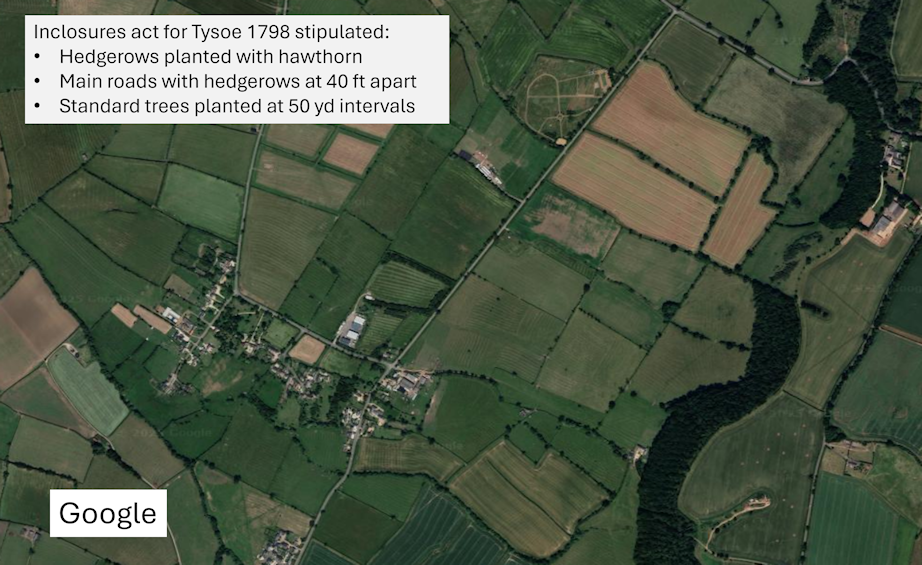 Figure 10. Inclosed fields around Lower Tysoe. The Red Horse lies in the current wooded area to the east of the hamlet