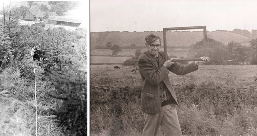 It was not until the 1950s that the whole topic of red horses in Tysoe, none of which was visible, was rekindled. This was due initially to the efforts of Kenneth Carrdus, later in collaboration with Graham Miller, although perhaps a BBC radio discussion on the topic of the Red Horse broadcast in 1953 may have sparked new interest. For the next 20 years Carrdus and Miller researched the long ambiguous history of the Red Horse and initiated detailed survey, photography and archaeological excavation in order to identify its exact position and character – work made more challenging by the planting of trees in the area in 1959 (Figure 18). Their results were initially detailed in their booklet The Red Horse of Tysoe published in 1965 and periodically updated. A review of their efforts shows just how significant their achievements were (See The work of Carrdus and Miller), their work being aired in a TV documentary series Arthur C Clarke’s Mysterious World broadcast in September 1980.